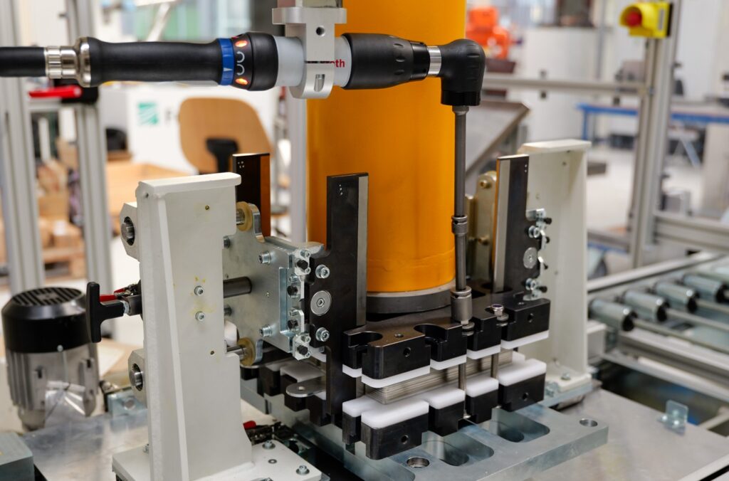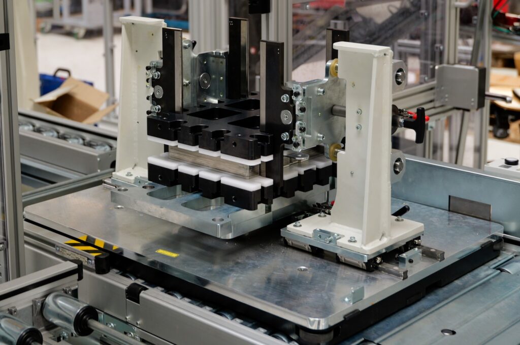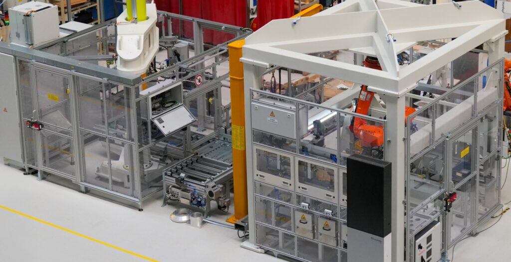 Wir entwickeln kontinuierlich neue Technologien für das Stacking und haben dafür erfolgreich eine neue Anlage in Betrieb genommen. Die hochpräzise Stackinganlage ermöglicht die automatisierte Handhabung komplexer Stack-Komponenten mit Toleranzen von 0,1–0,2 mm. Dank intelligenter Kamerasysteme und eines innovativen Mehrfachgreifers lassen sich unterschiedliche Bauteile effizient, reproduzierbar und ohne Greiferwechsel verarbeiten.