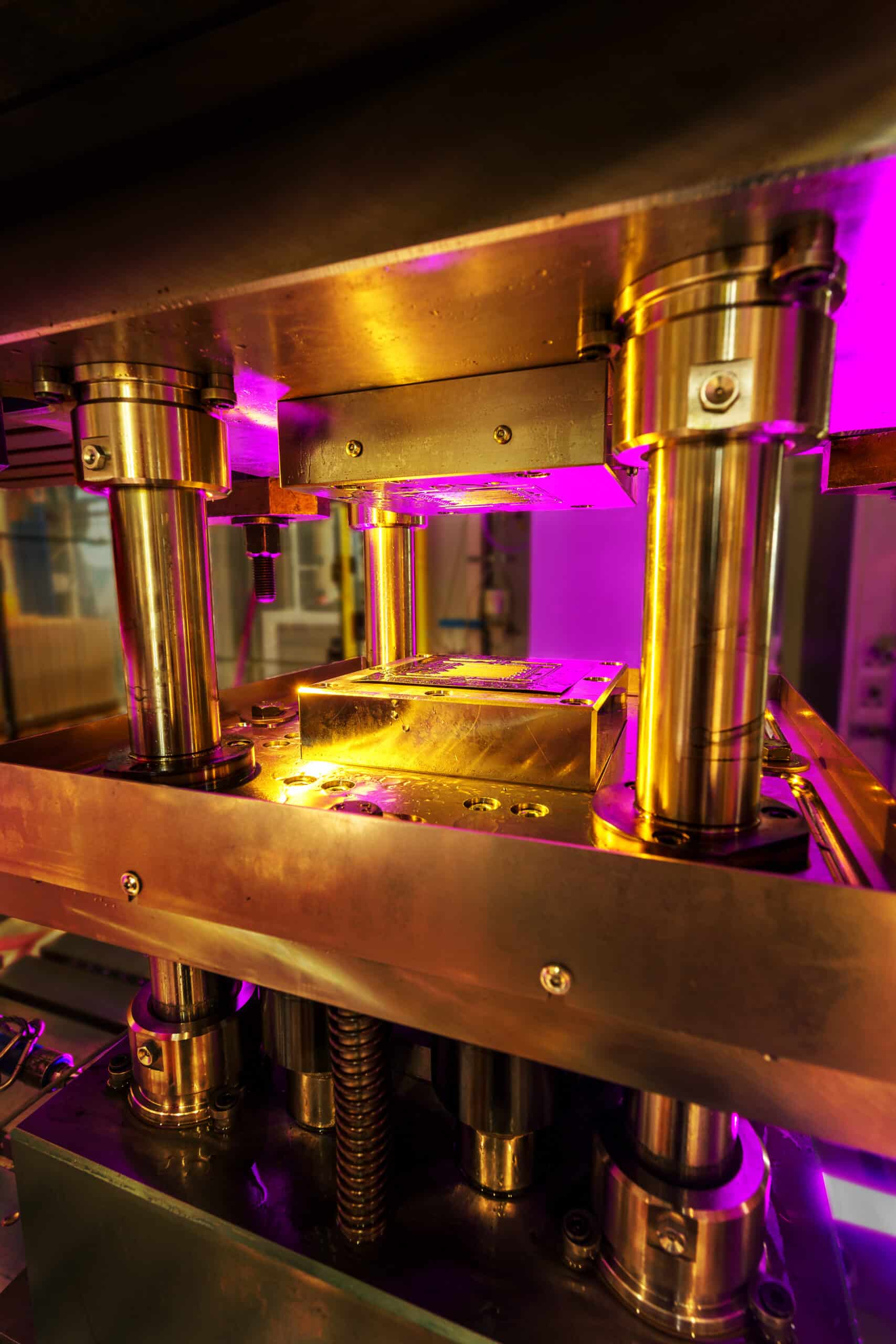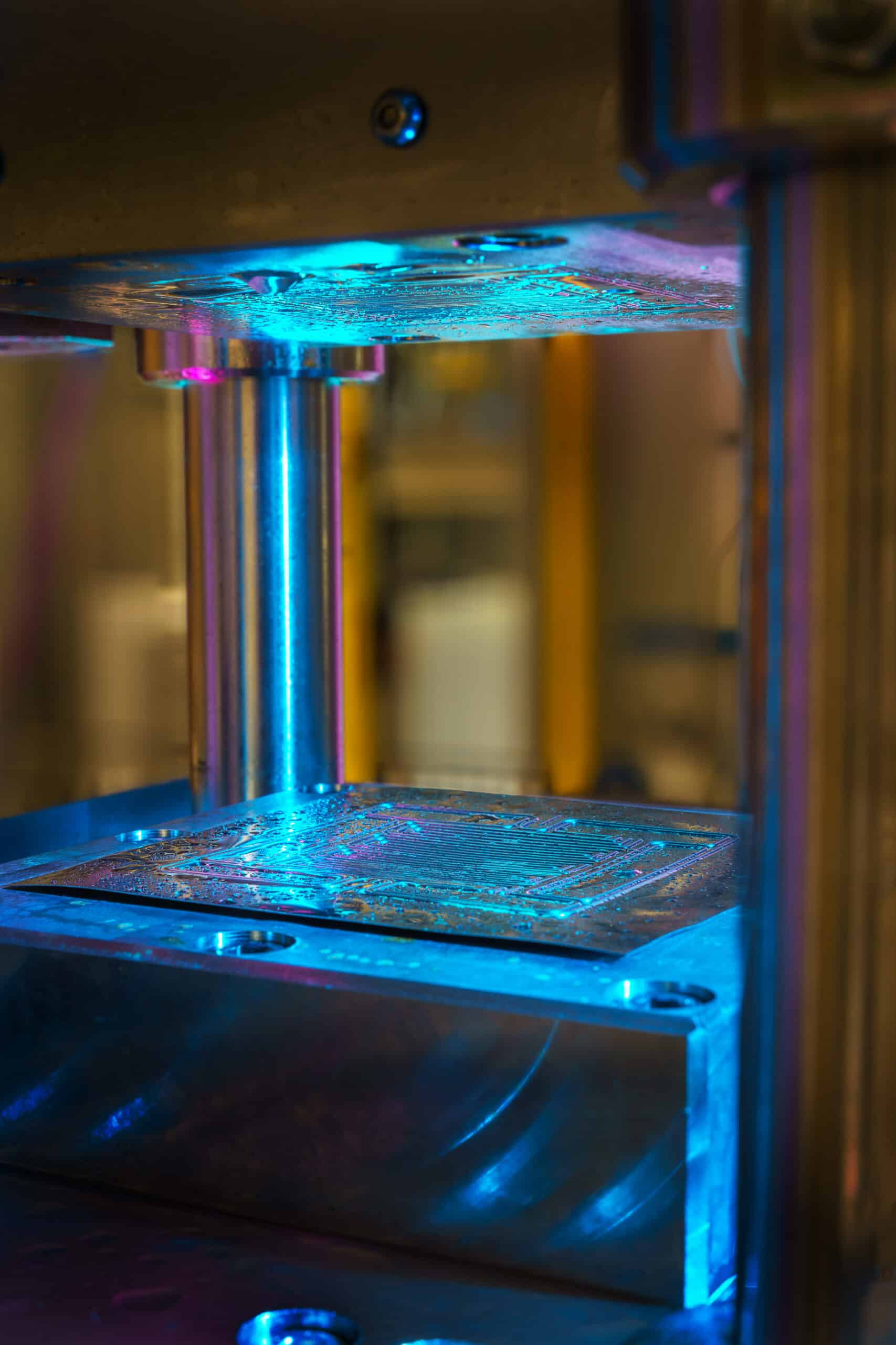 Im Rahmen des Projektes wurde das im vorherigen durch die SAB geförderten Projekt erstmals für hohe Umformdrücke realisierte Verfahren der sogenannten passiven Hochdruckblechumformung (P-HBU) weiterentwickelt. Dabei wurden eine servoelektrische Presse eingesetzt und das Werkzeug mit einem automatischen Materialvorschub und -beschnitt ausgestattet. Durch diese Optimierungen konnte die Ausbringung von ca. 7 Hub pro Minute im Stand der Technik auf 60 Hub pro Minute gesteigert werden.